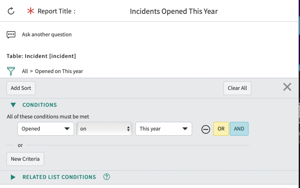 Next, add your filter. I am adding a filter for Incidents Opened on This Year.