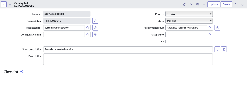 This might not be as useful anymore now that ServiceNow added Playbooks, but it’s still a neat way to apply a checklist to a task using a script.