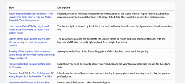 Probably better ways to implement, but this is a cool way to trigger an outbound REST API and display the results in a portal widget/html tabel. In this example, I am pulling NBA news from a news API.